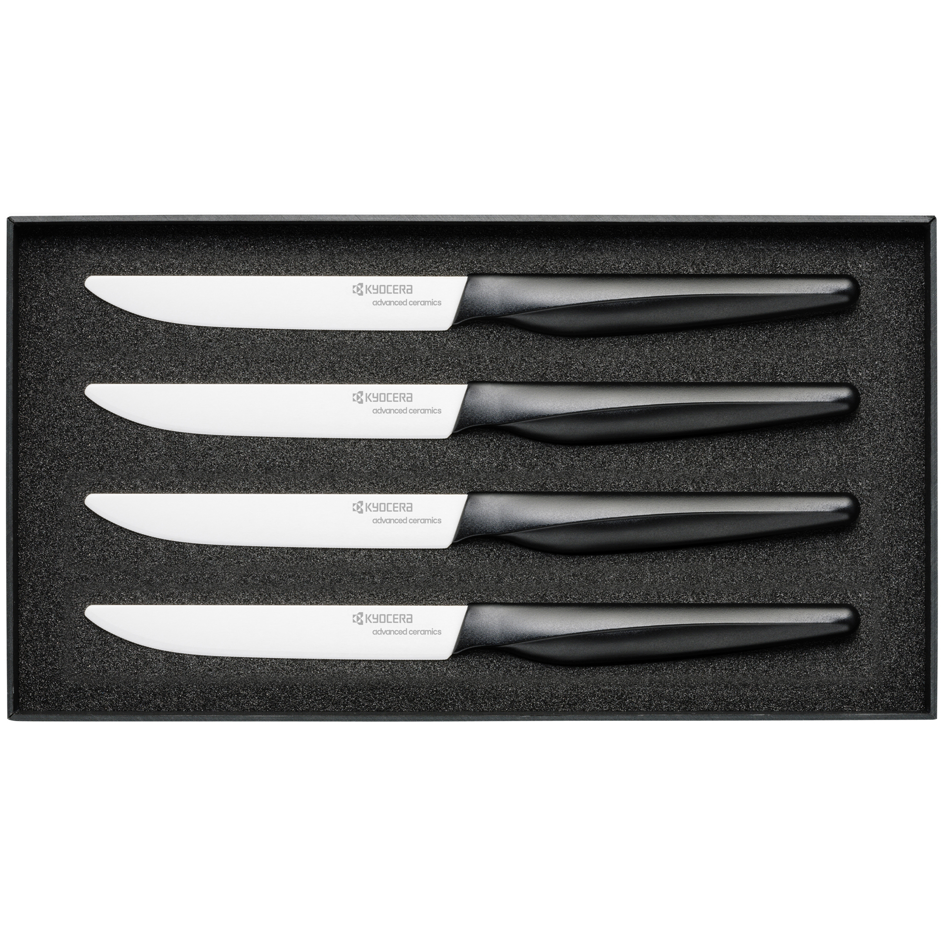 4-Piece Micro-Serrated Ceramic Steak Knife Set - Black/White